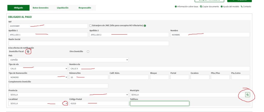 Rellenar los datos señalados en rojo y siguiendo el orden de arriba hacia abajo, no al revés.
