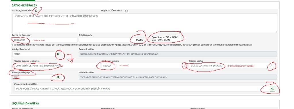 Importe tasa 046 para el registro del Certificado Energético en Andalucía